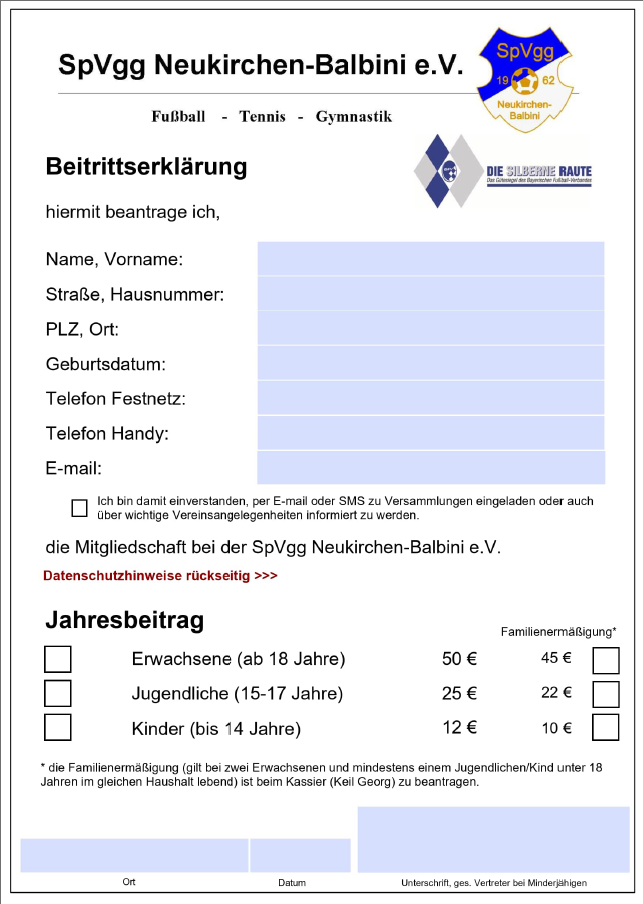 DOWNLOADS Beitrittsformular, Bandenwerbung, Satzung Download Beitrittserklärung Download Bandenwerbung Download Satzung Der Verein Aktuelles Termine Vorstandschaft Fanshop Sponsoren Historie Impressum Abteilungen Fußball Fußball-Nachwuchs Tennis Gymnastik Kinderturnen Damenriege Galerie Kontakt Downloads © 2024 I SpVgg Neukirchen-Balbini